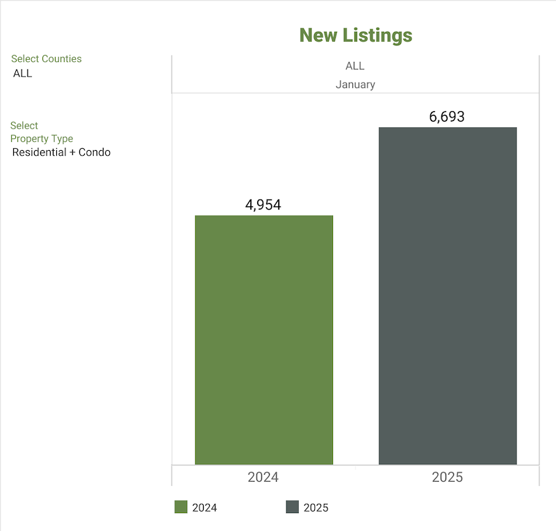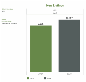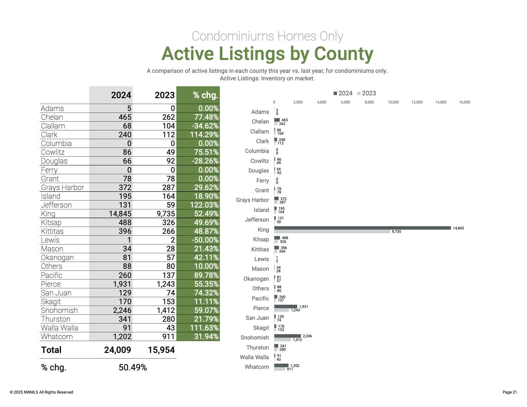 In NWMLS’s service area, 23 out of 27 counties saw a year-over-year increase in new listings, with 17 counties showing positive growth.
