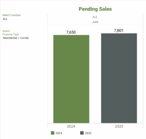 The number of active listings reached 19,837, marking the first time since September 2022 that all 27 counties in the NWMLS service area experienced double-digit, year-over-year increases in inventory. In addition, the median home price remained relatively stable from May 2025 (increasing 1.52% from $660,000 to $670,000 in June 2025) and increased just 3.08% year-over-year from June 2024’s median price of $650,000.