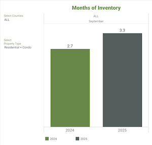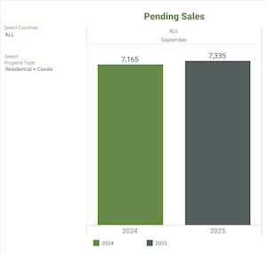 There were 7,335 residential and condo units under contract in September 2025, a 2.4% increase from September 2024. Month-over-month, pending listings dropped by 3.7% from August.